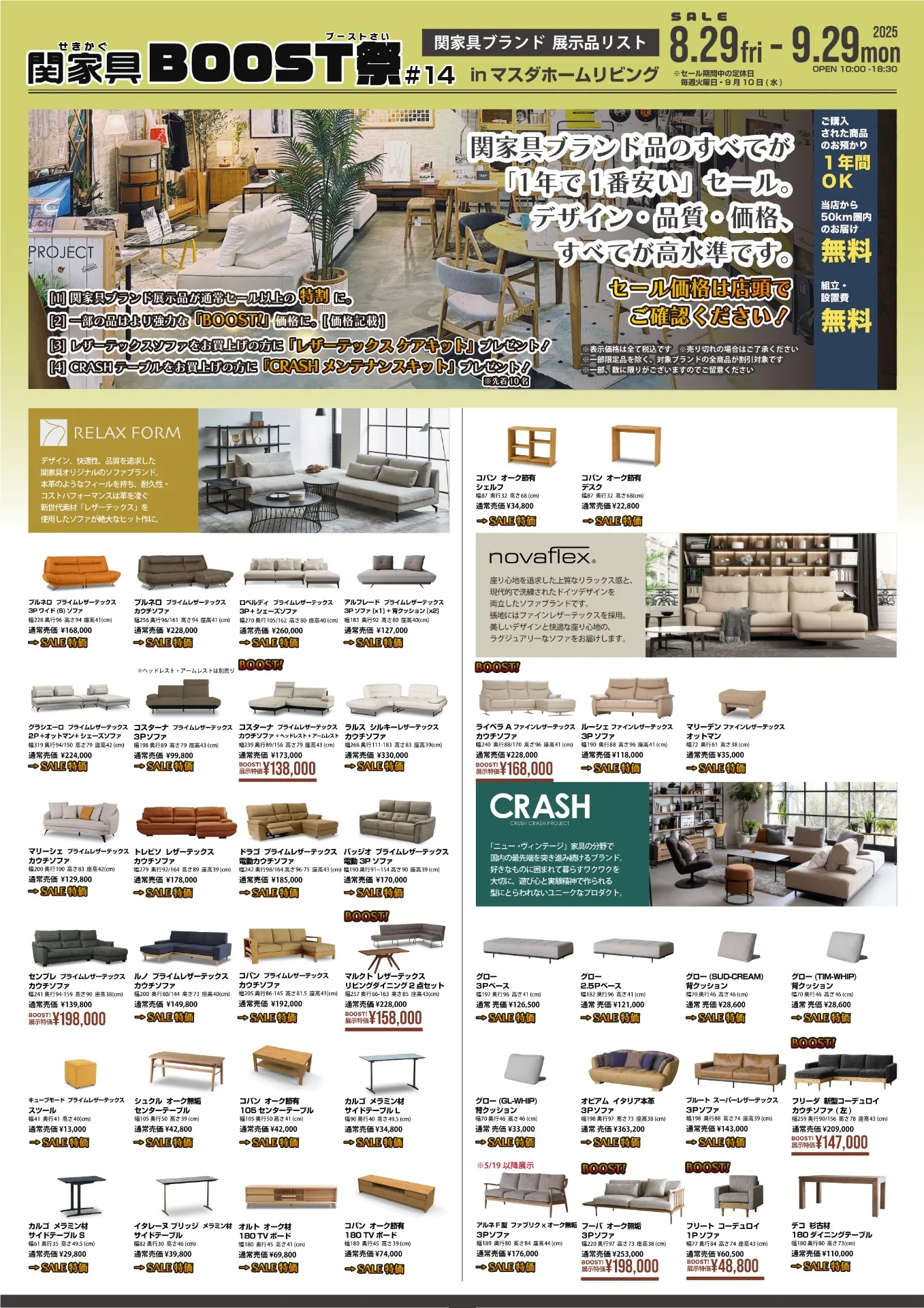【セール】 関家具 BOOST祭 #14 [8/29 〜 9/29]